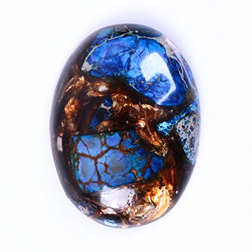 30x22mm Oval Cabochon CAB Flatback Semi-precious Gemstone Ring Face (Blue Sea Sediment Jasper & Copper)