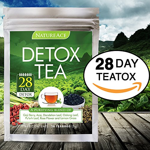 Nature Ace 28 Day Detox Tea - Best For Teatox, Body Cleanse, Bloating and Body Fat Reduction, Liver + Skin Detox, Weight Loss - 100% Natural Organic Chinese Herbs - For Men & Women - Premium Tea Bags