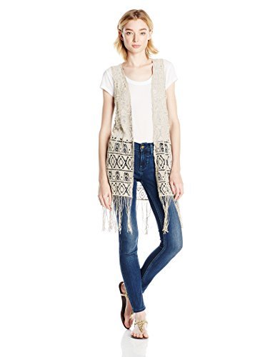 It's Our Time Juniors Cotton Crochet Long Vest W Fringe Hem, Value Not Found, Value Not Found