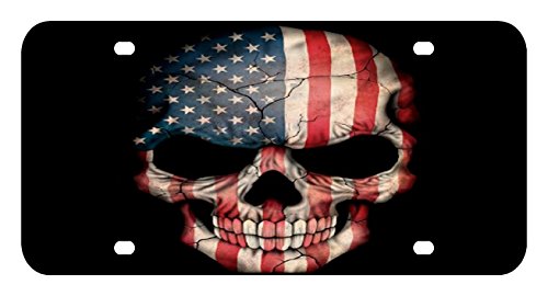 L18 AMERICAN FLAG SKULL License Plate Front Custom Novelty Tag Vanity Frame Holder Wrap Wraps