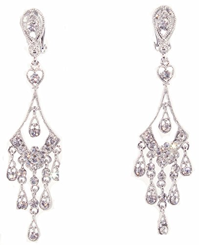 3 in Vintage Style Silvertone Chandelier Clip Earrings Accented with Clear Crystals
