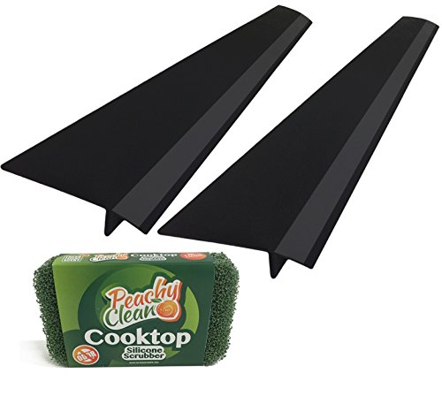 Peachy Clean Silicone Gap Cover (Color: Black, Set of 2) for Stove Counter Gap Cap with Bonus Antimicrobial Cooktop Scrubber