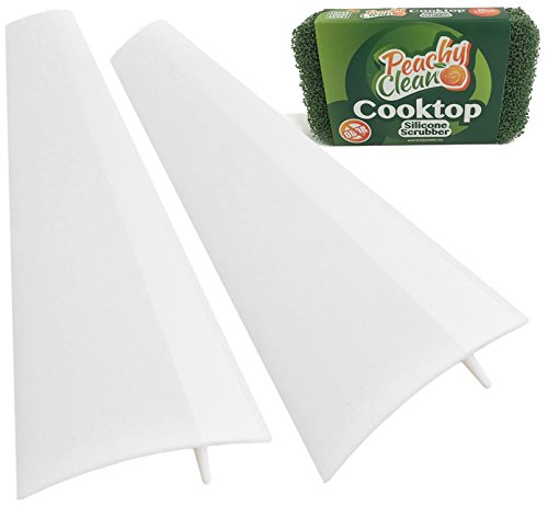 Peachy Clean Silicone Gap Cover (Color: White, Set of 2) for Stove Counter Gap Cap with Bonus Antimicrobial Cooktop Scrubber
