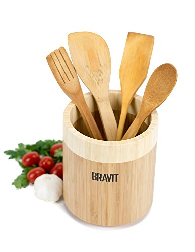BRAVIT Good Grips Large Bamboo Rotating Spatula/Utensil Holder