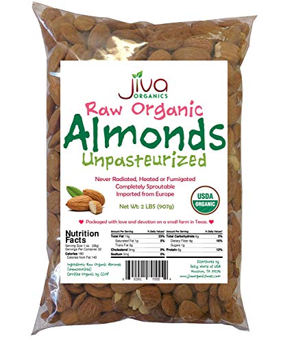 Jiva Organics Raw Unpasteurized Organic Almonds (Sproutable) 2 Pound Bag