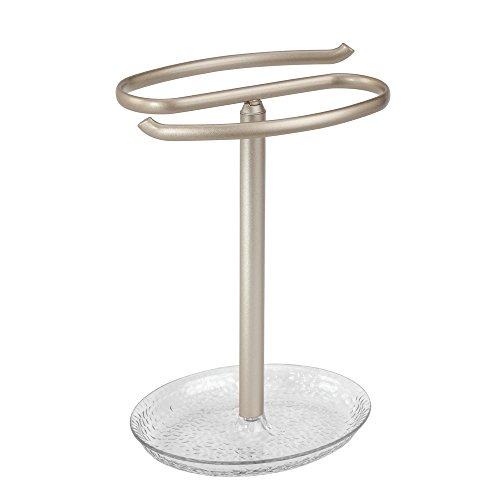 iDesign Rain Bathroom Fingertip Hand Towel Holder with Jewelry Tray for Vanity Countertops - Clear/Satin