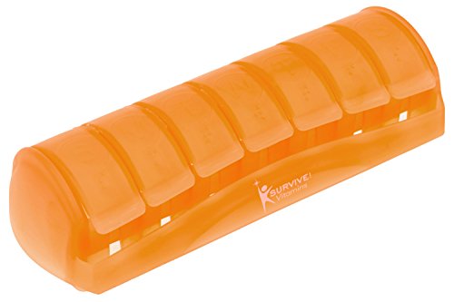 Survive Vitamins 7 day pill organizer is the plastic pills box case in translucent orange and one more color is available from this pill holder
