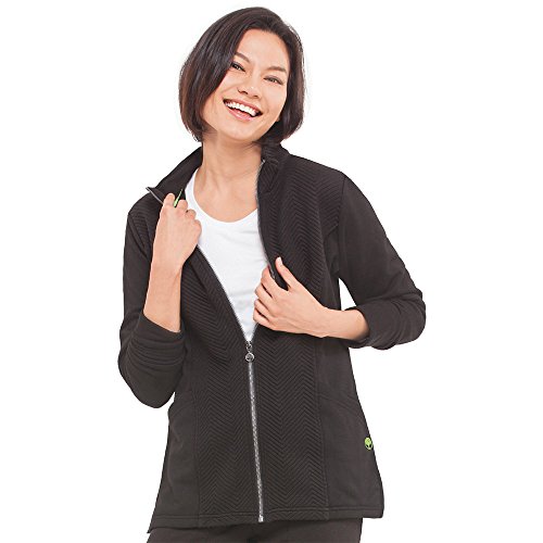 Healing Hands Scrubs Jolie 5054 Quilted Chevron Knit Zip Up Jacket- Black- S