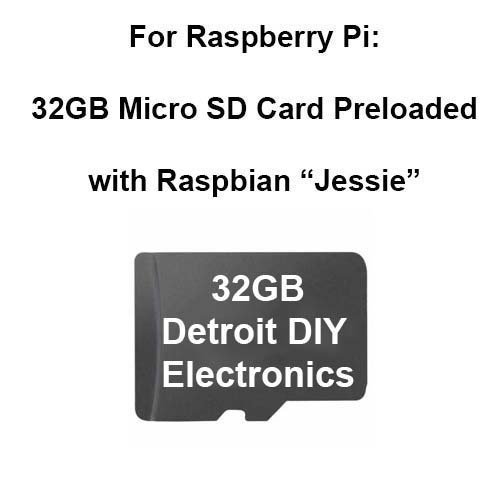 Detroit DIY Electronics Preloaded Micro Sd Card for Raspberry Pi (32GB Micro with Adapter, Raspbian Jessie)