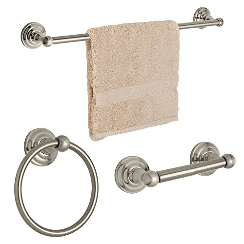 Dynasty Hardware 3800-SN-3PC Palisades Series Bathroom Hardware Set, Satin Nickel, 3-Piece Set, With 24" Towel Bar