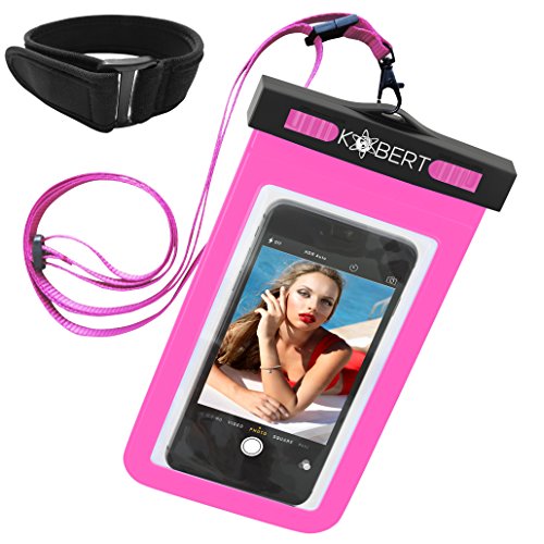 Kobert Waterproof Cell Phone Case (Pro Pink), Dry Bag Pouch for iPhone 8, 8 Plus, X, 6s, 6s Plus Samsung Galaxy s7, s7 Edge, s6, Any Phone up to 6 Inches - Pink Strap and Armband