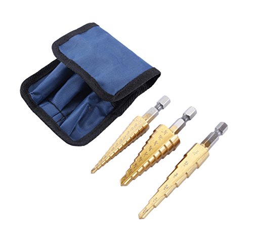 Lutra Tools - Step Drill Bit Set - 3 Piece Set with Pouch | Titianium Coated HSS Steel HEX Shank