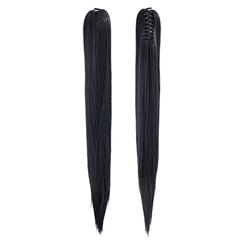 SWACC Straight Claw Clip Ponytail Extension Synthetic Clip in Ponytail Hairpiece Jaw Clip Hair Extension (1B-Off Black)
