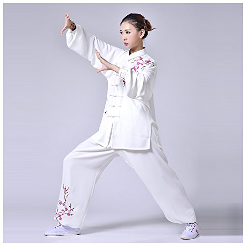 Itopfox Unisex Cotton Blend Embroidery Tai Chi Uniform Kung Fu Morning Exercise