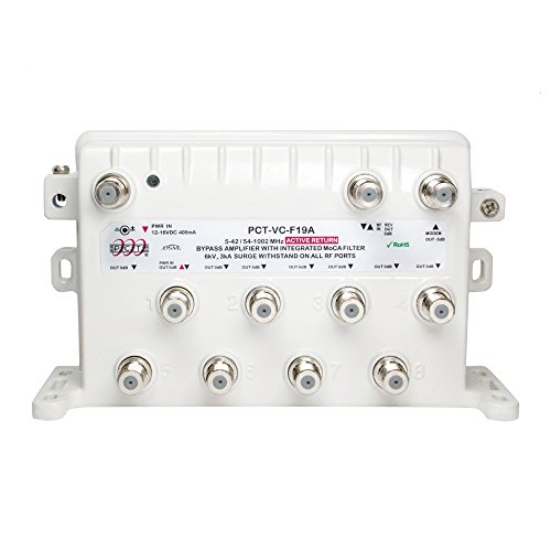 PCT 8 Port Cable TV Splitter Signal Booster/Amplifier with Active Return Zero Signal Loss and Integrated MoCA Filter