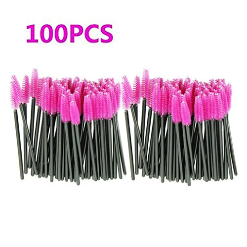 Makeup Brush,Sandistore 100pcs/lot make up brush Pink synthetic fiber One-Off Disposable Eyelash Brush Mascara Applicator Wand Brush (100 Pcs)
