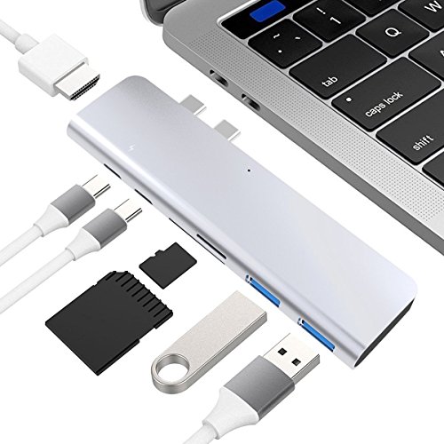 USB C Hub, USB C to HDMI Adapter, 7 in 1 Type C Hub with 4K@30Hz HDMI Port & 2 USB3.0 Port, Type C Female & Thunderbolt 3 Pass-Through Charging Port, SD/Micro SD Card Reader for MacBook Pro 2016/2017