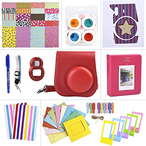 Shaveh 11 in 1 Camera Accessory Bundles Set for Fujifilm Instax Mini 8 Mini 9 (case/ Sticker/ Album/ Hang Frames/ Film Frames/ Sticker Borders/ Border Stickers/ Lens/ Filters/ Strap/ Pen) (Black)