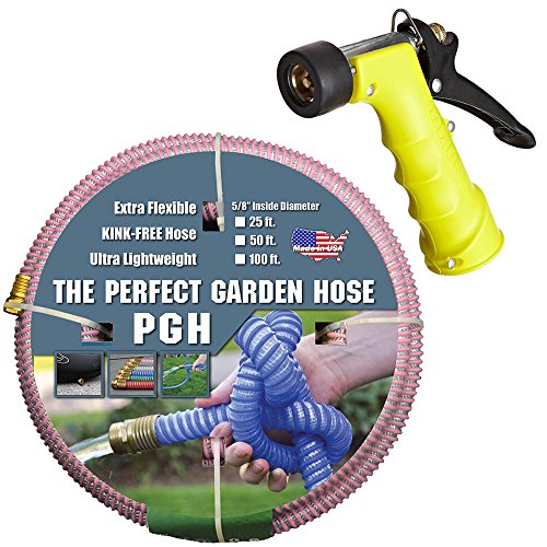 Tuff-Guard 001-0100-0600-SN75 Thermoplastic Elastomer/Polyester/Polypropylene (PP)/Brass The Perfect Garden Hose, Coupled Male x Female GHT, 5/8" x 50', Pink, GHT Thread, 50' Length, 0.63" ID