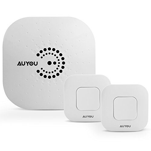 AuYou Portable Wireless Doorbell Kit with 1 Receiver Plugin and 2 Remote Buttons Transmitter for Hard Hearing Range 100m,36 Melodies Chimes Doorbell