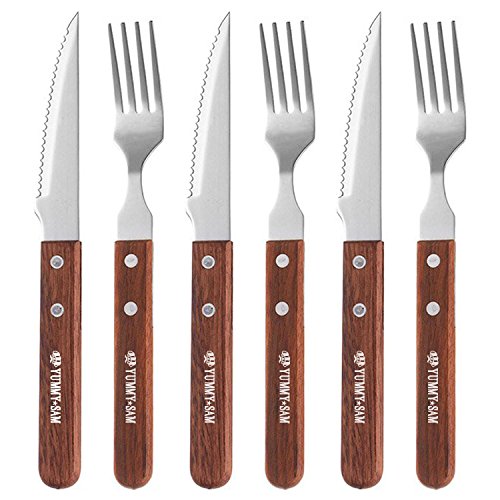 Forks and Knives Flatware Stainless Steel Dinner Fork Carving Knife Set for Household, 8 Inch Wooden Handle Stainless-steel Blade Steak Fork and Knife Cutlery (3)