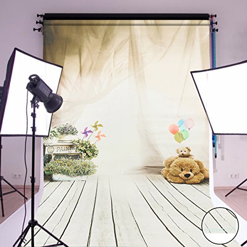 MOHOO 5x7ft Cotton Polyester Bear Ballon Wooden Floor Children Photography Backdrop Collapsible Washable Background Photo Studio Props (Updated Material)1.6mx2.1m
