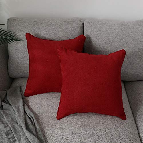 AngJi Pack of 2 Pillows Decorative Throw Pillow Cover for Couch Sofa Home Decor Solid Soft Cotton 18 x 18 Inches, Red (q6, 18"x 18",2 Packs)