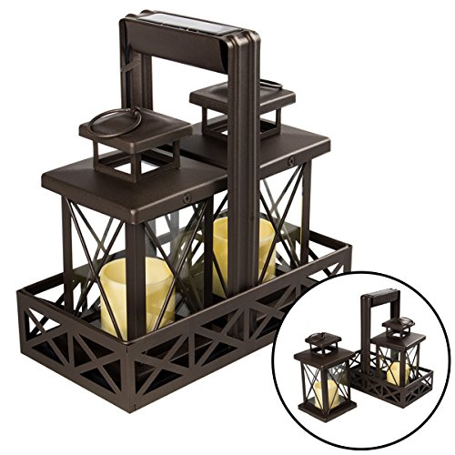 2 LED Solar Rechargeable Lanterns in Basket Outdoor Camping Porch Table Hanging