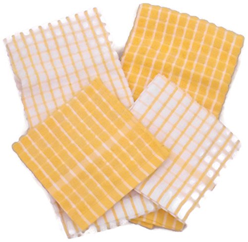 4 Piece Yellow Checkered Kitchen Towel Set with Dish Cloths