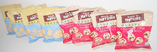 Back To Nature Organic Chocolate Chip Cookie Bites 4 (1 Oz.) & Vanilla Animal Crackers 4 (1 Oz.) - Small Storage Space Friendly!