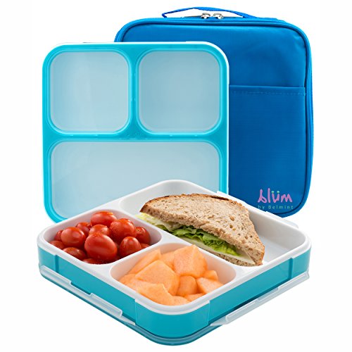 Bento Lunch Box with Insulated Bag - Slim Design Fits in Bag or Large Purse - 3 Leakproof Compartments for Easy Portion Control