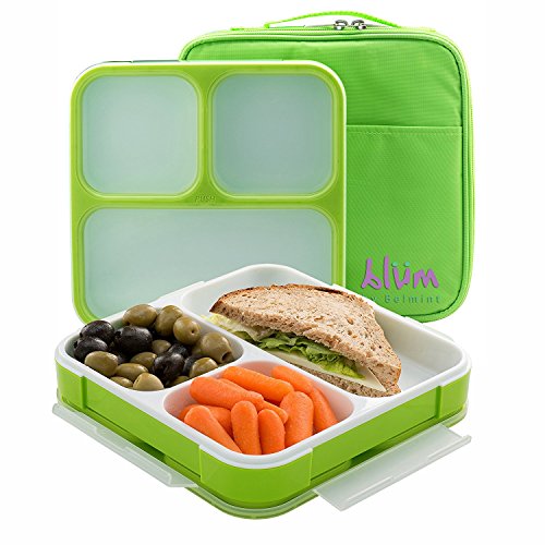 Bento Lunch Box with Insulated Bag | Slim Design Fits in Bag or Large Purse | 3 Leakproof Compartments for Easy Portion Control | Back to School Sale