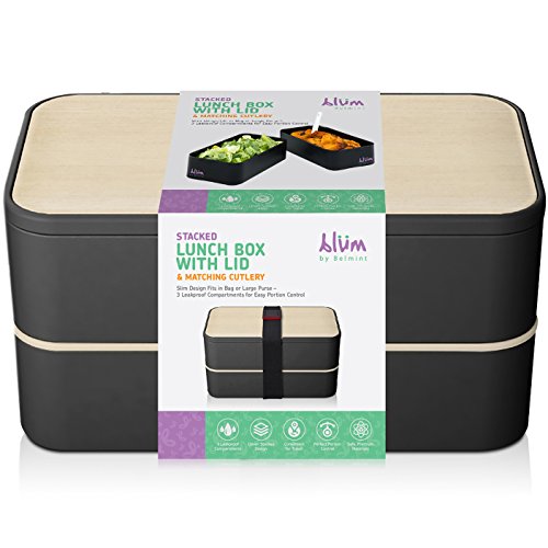 Blüm Collections Slim Stacked Lunch Box with Lid with 3 leak Proof Compartments