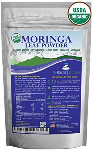 1 lb. Premium Organic Moringa Oleifera Leaf Powder. 100% USDA Certified. Sun-Dried, All Natural Energy Boost, Raw Superfood and Multi-Vitamin. No GMO, Gluten Free. Great in Green Drinks, Smoothies.