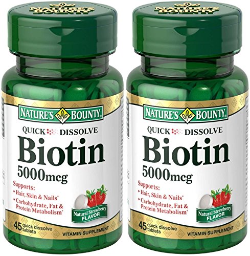 Natures Bounty Biotin Quick Dissolve Tablets, 5000 mcg, 90 Tablets (2 X 45 Count Bottles)