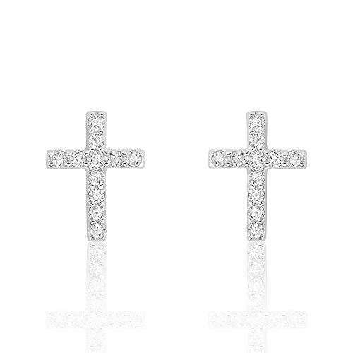 Cubic Zirconia Sterling Silver Beautiful Cross Stud Earrings - CZ Cross Earrings Studs