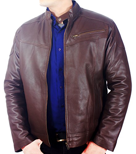 Classic Brown Stand Collar Original Genuine Lambskin Soft Leather Jacket for Men