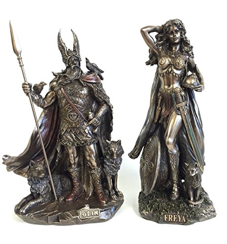 Norse Gods Odin & Freya Bronze Finish Statue Set