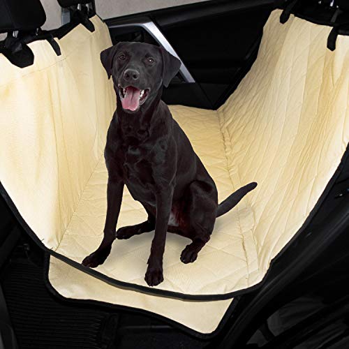 Plush Paws Products Waterproof Pet Seat Cover Non-Slip Hammock with Bonus Two Seat Belts and Two Dog Harnesses (Tan)