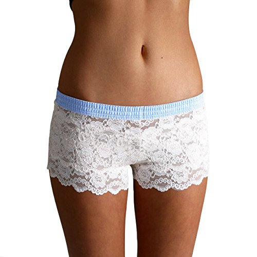 IVORY LACE BOXERS WITH LIGHT BLUE DOT FOXERS BAND-XS,Ivory Lace/Light Blue,X-Small