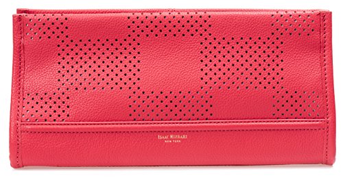 Isaac Mizrahi Womens Fashion Designer Handbags Kay Leather Check Perforated Clutch Black
