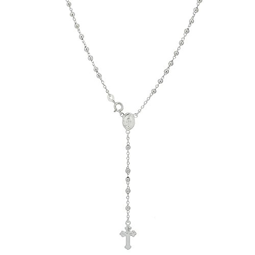 Sterling Silver Baby Rosary Necklace Dainty 3mm Beads Handmade for Women Italy, 18 Inch