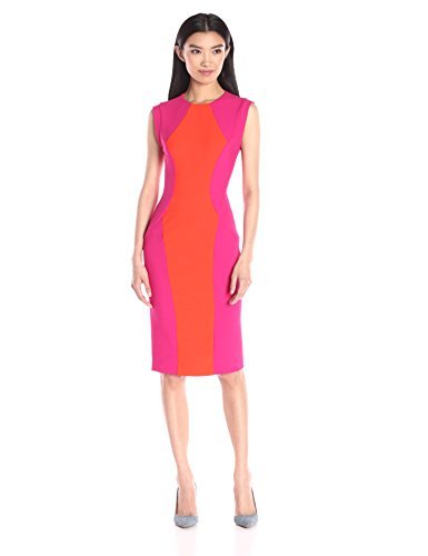 Nicole Miller Women's Stretchy Tech Seamed Tee Dress, Orange/Very Berry, 8
