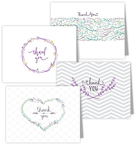 One Jade Lane - Floral Medley, Designer Thank You Cards - Heavy Stock - 4 Designs - Set of 12 Folded Cards & Our "Unique Fine Cornered Envelopes".