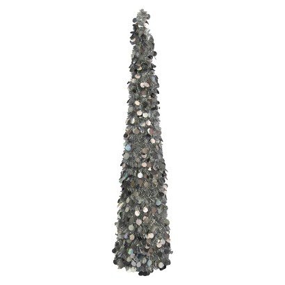 Collapsible 4' Lighted Silver Tinsel Tree by Merry Brite