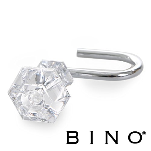 BINO Shower Curtain Hooks - Chrome, Set of 12 Shower Curtain Rings - Shower Hooks for Curtain Shower Rings
