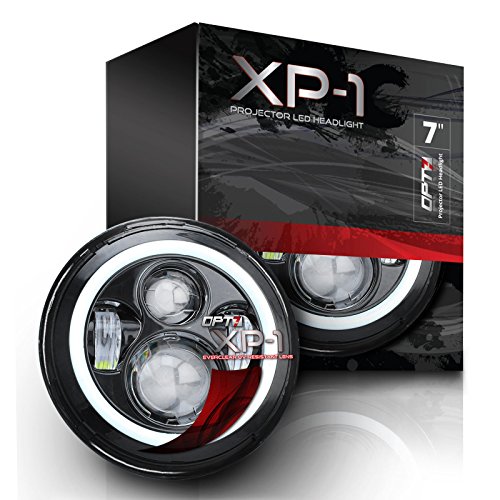 XP-1 LED Projector Headlight for Harley Davidson - 150 Yds of Light - Black w/Halo Angel Eye DRL Ring - Daymaker-Style 7-Inch Single Lamp Round - Million Mile Lifetime - 2 Year Warranty [H4, H6024]