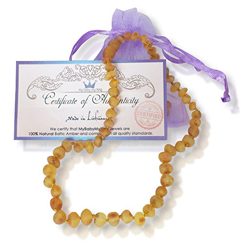 Amber Teething Bracelet for Baby Cognac Color. 100% Natural Baltic Amber, Baroque Style Round Raw Beads 5.5 in Long.