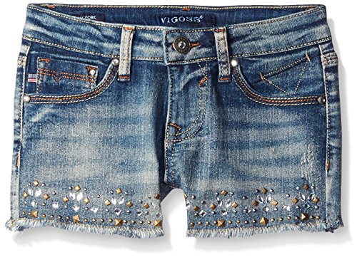 Vigoss Girls' Stud Trimmed Hem Short, Blue/Club Wash, 14