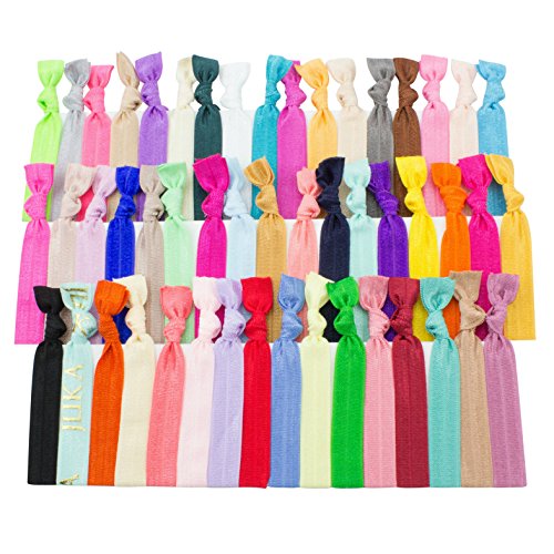 JLIKA Elastic Hair Ties (SET OF 50) Colorful Solids, No Crease Ouchless Ponytail Holders, Ribbon Hairties for Women Girls Teens and Kids